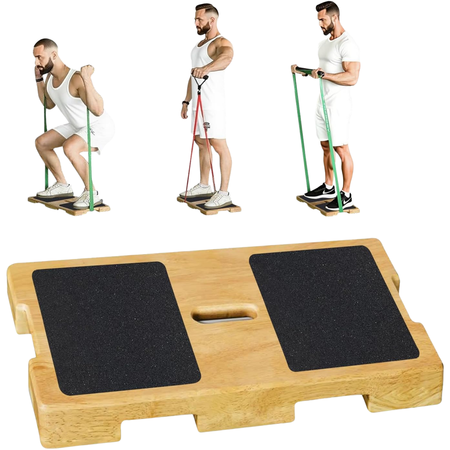 • NEW UPGRADED VERSATILE DESIGN: Sturdy wooden platform designed specifically for resistance band exercises with a slot in the middle, and anti-slip stickers on the footrest. Providing a stable base for various workout routines